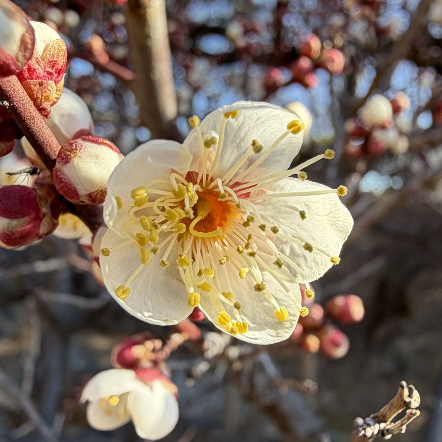 咲き始めた梅を楽しみに、訪れる人が少しずつ増えています