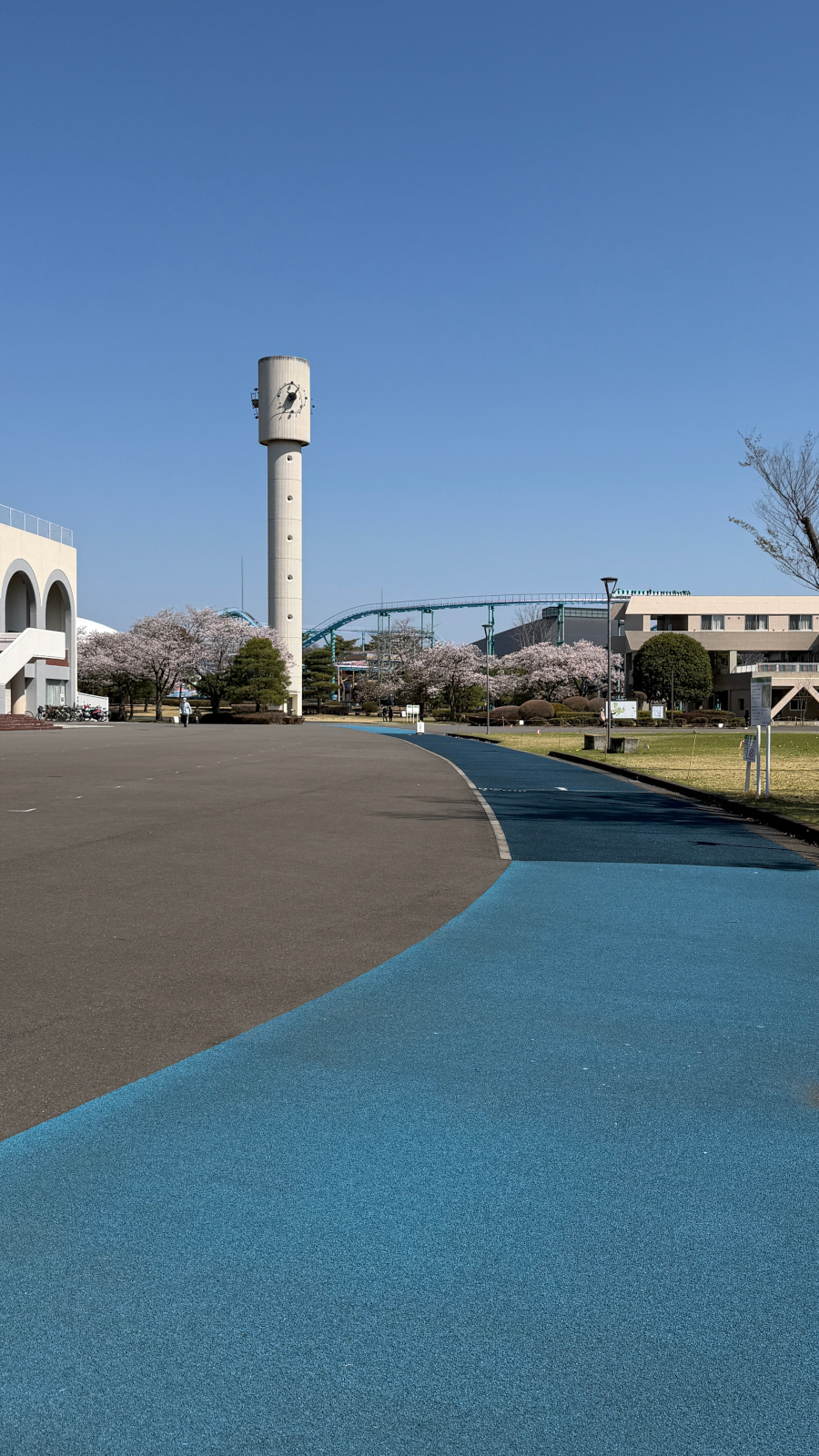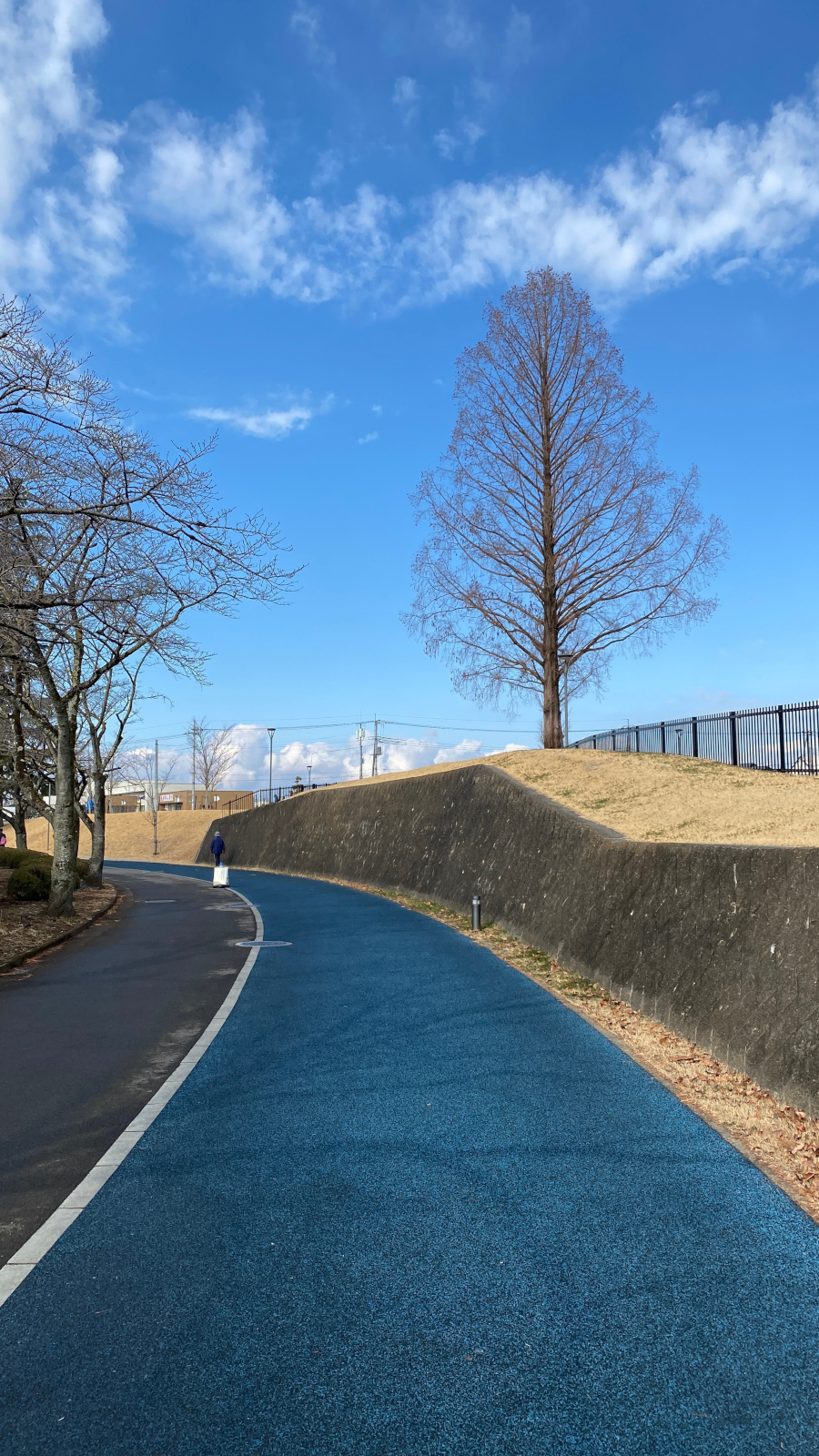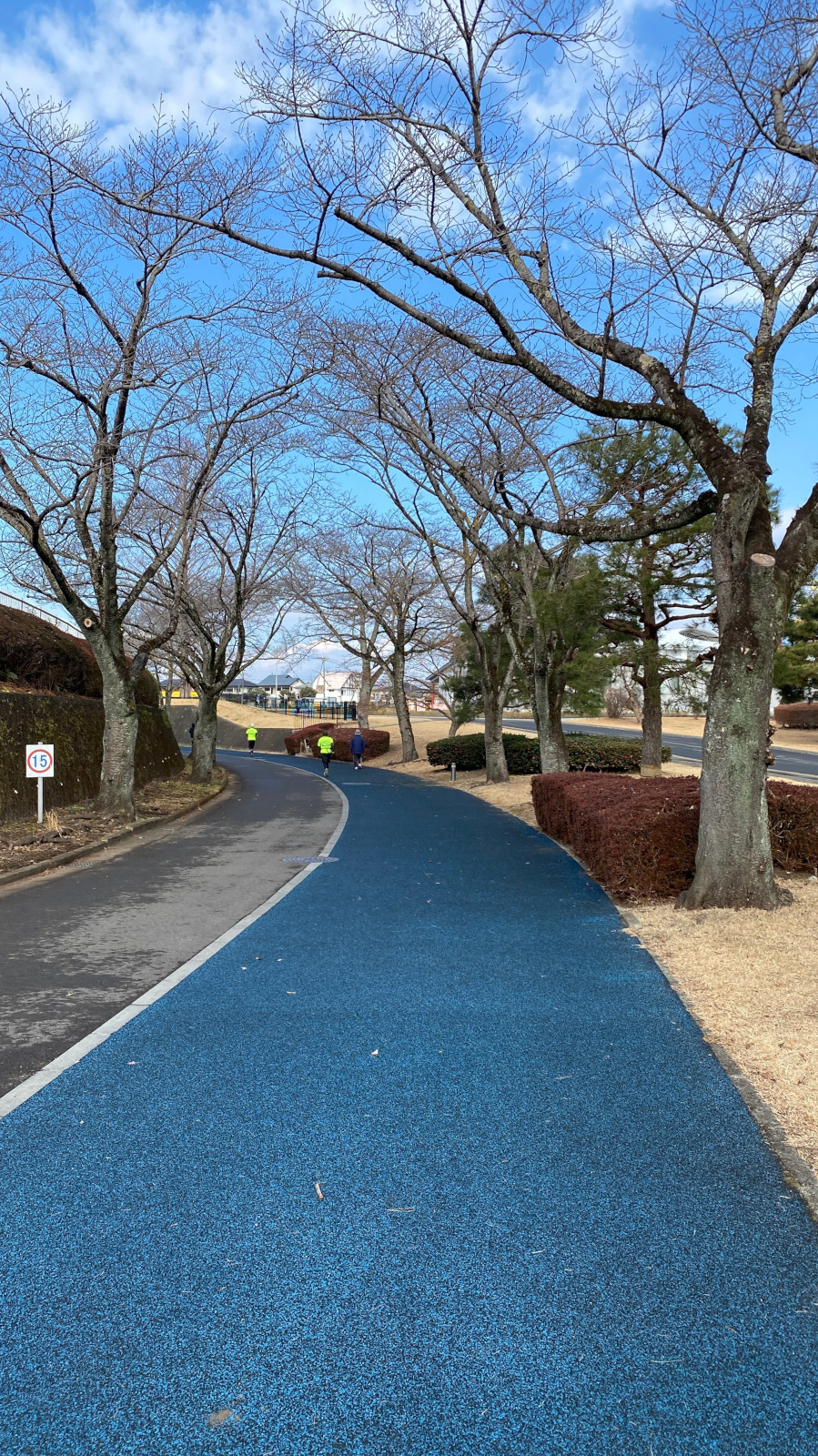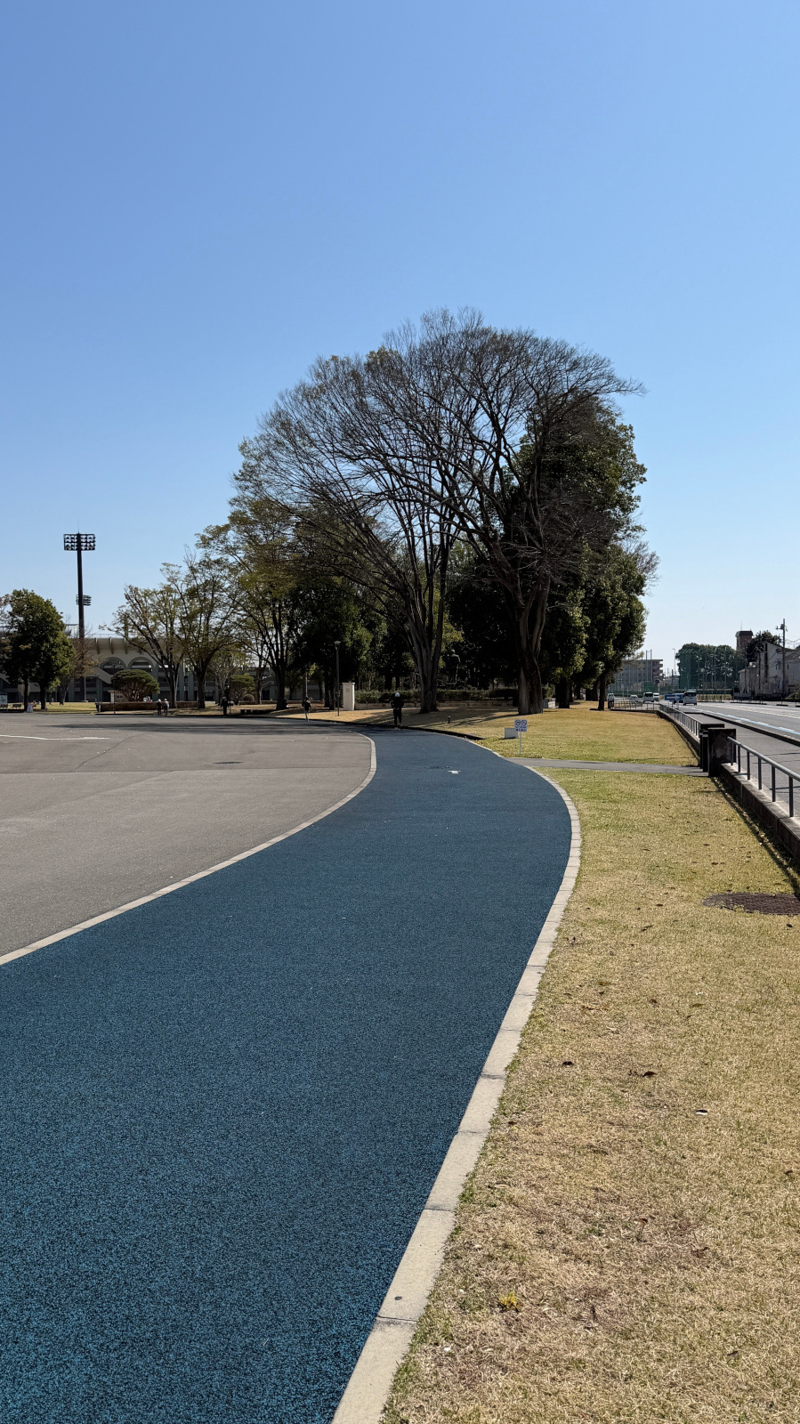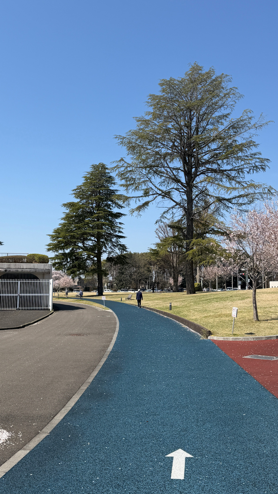 第二陸上競技場の外周コースは、弾性舗装が施された一周780メートルの歩き心地の良い人気のコースです.ジョギング・ウォーキング専用であり、反時計回りで進行することがルールとなっています.陸上競技のイベントが開催される日は、アスリートのウォームアップに使用されることもあります.春には美しい桜のトンネルが楽しめ、また、一年を通して雄大なヒマラヤスギが訪れる方の心を和ませてくれる魅力的なコースです.(運動公園の全体マップはこちら)