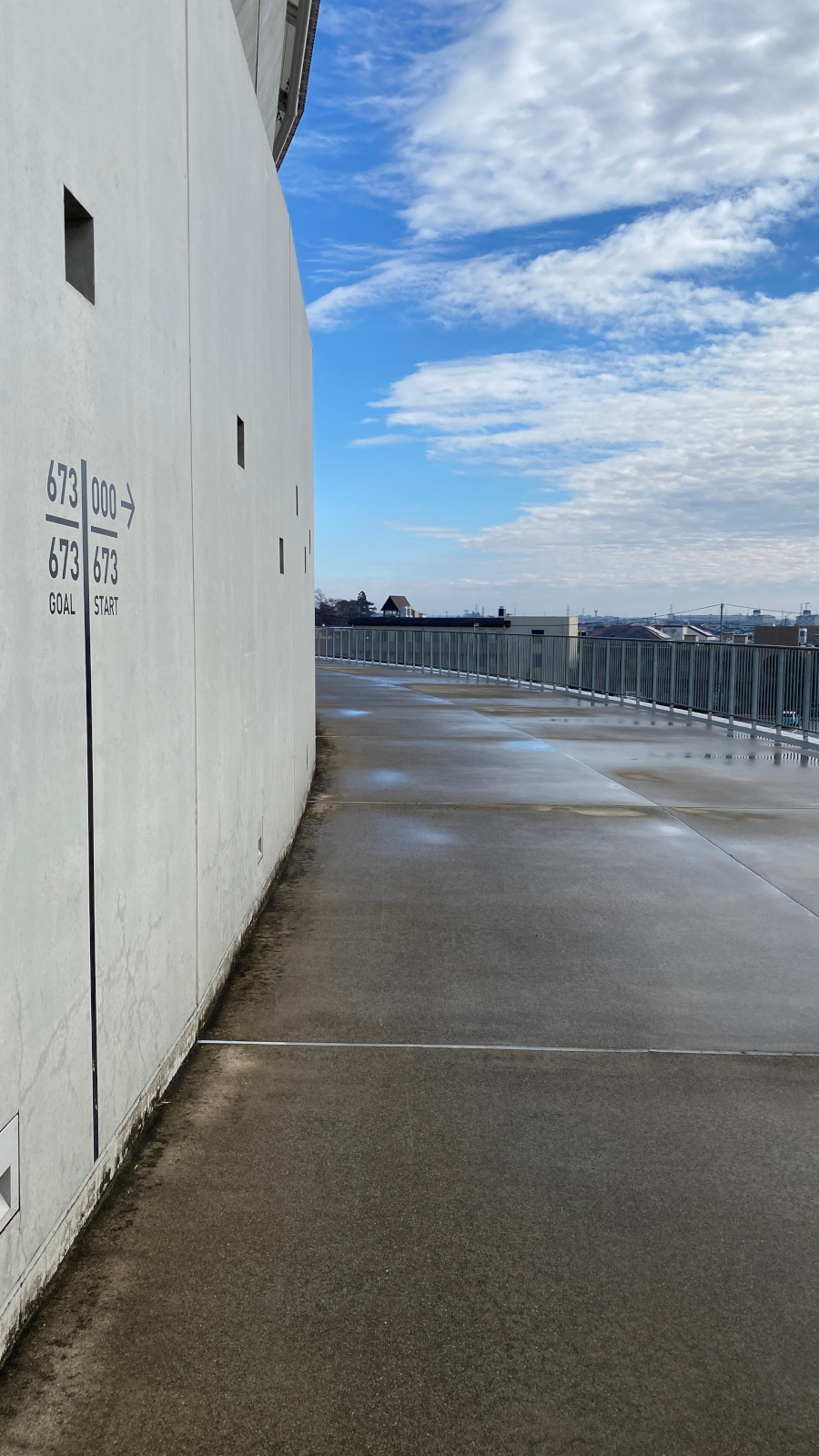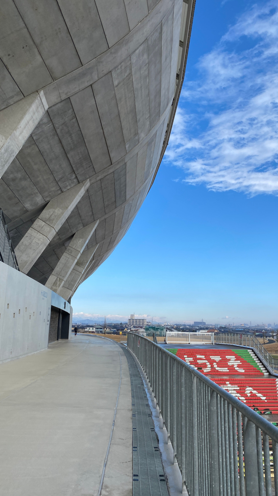 カンセキスタジアムは外階段を上ると観客席のゲートがあり、イベントのない時は通路を自由に歩くことができます.壁には「一周673メートル」の表示があり、ウォーキングを楽しまれる方が常にいらっしゃいます.白いコンクリートのコースのため、日差しの強い時期は照り返しが厳しくなります.そのため、私は主に秋から春にかけて利用しています.コースのどの方向を見ても景色が素晴らしく、宇都宮中心部の遠景や日光の山々を眺めることができるのも魅力の一つです.(運動公園の全体マップはこちら)