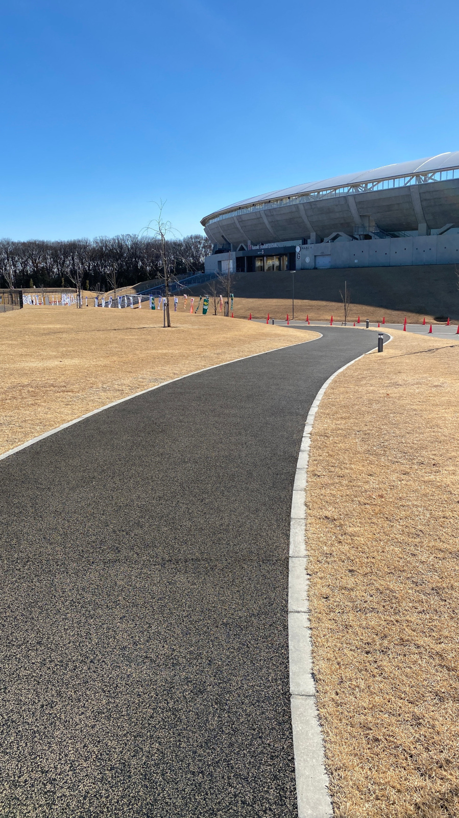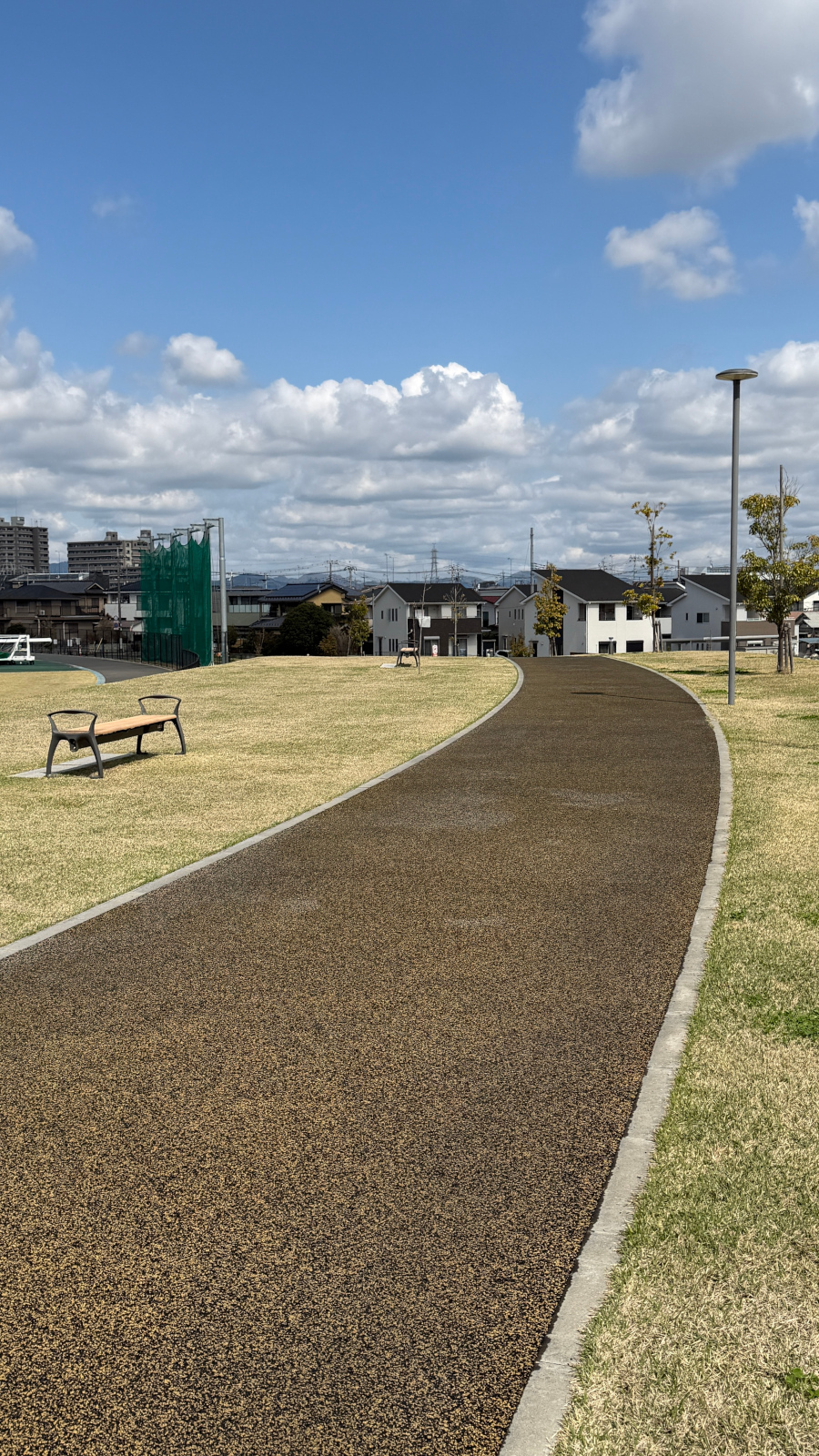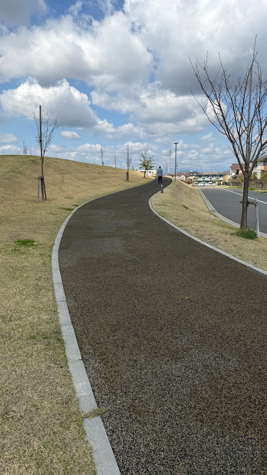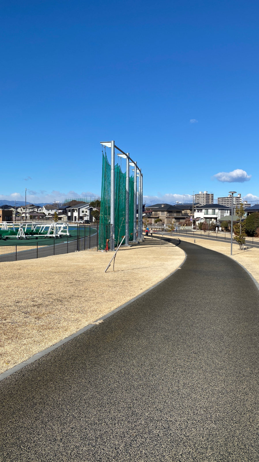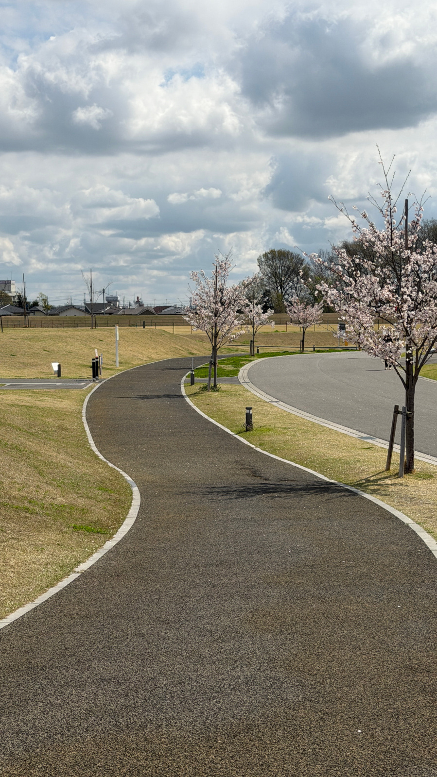投てき場とクレイグラウンドの外周に位置する、全長850メートルの「多目的広場コース」です.ジョギングやウォーキング専用のコースで、反時計回りに進行することがルールとなっています.弾性舗装が施されているため、快適に歩くことができるのが特徴です.このコースのすぐ外側には平坦な周回コースが並行していますが、専用コースの方はアップダウンがあるため、私は主にこちらを利用しています.また、クレイグラウンドの周囲には約9種類の桜が植えられており、春はもちろん、一部の品種は秋にも美しい景色を楽しませてくれます.(運動公園の全体マップはこちら)