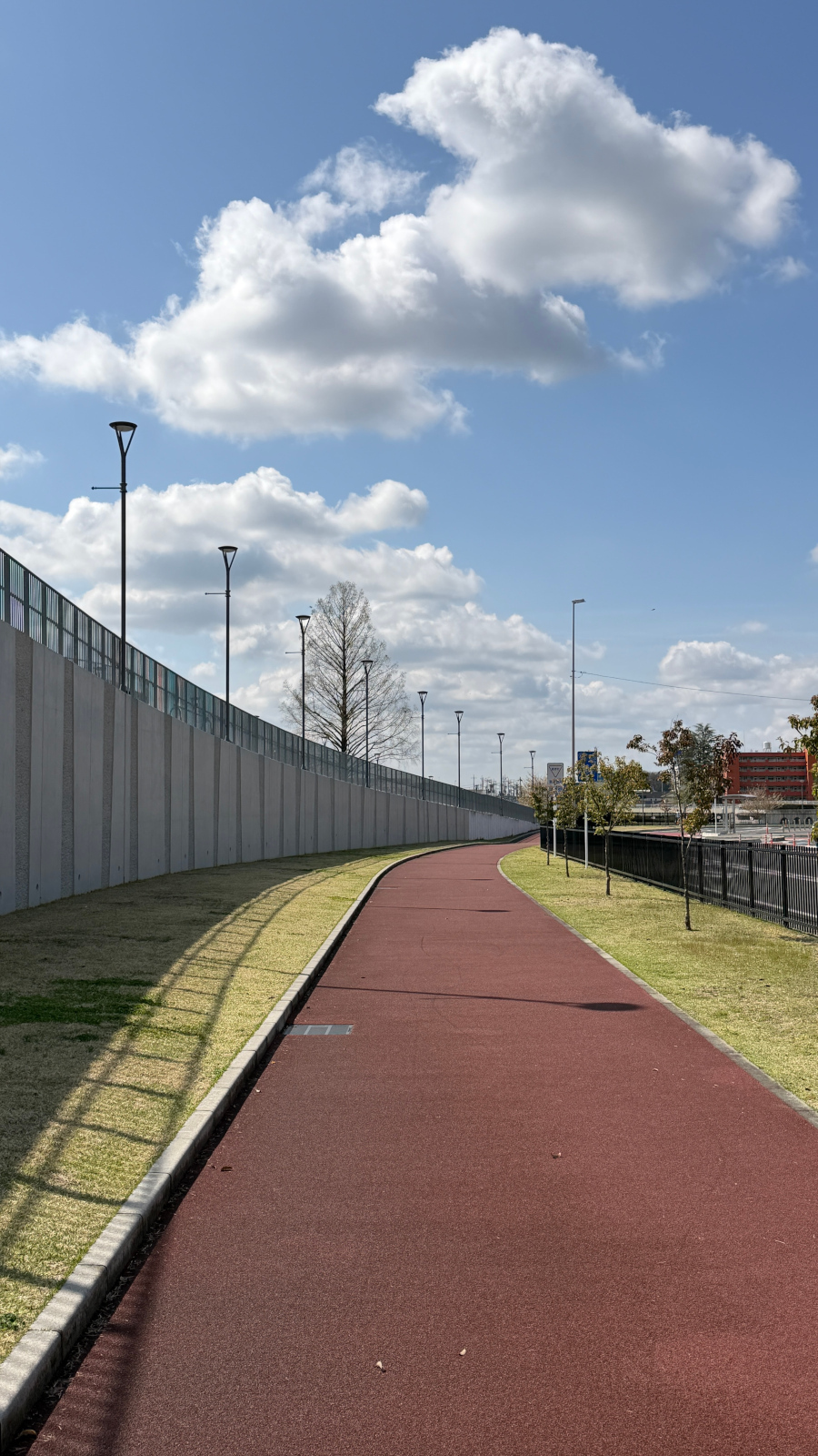 宇都宮市民なら一度は訪れたことがある遊園地、「とちのきファミリーランド」の外周に位置する、一周927メートルのコースです.特に週末は、元気いっぱいの子どもたちの歓声が響き渡り、楽しい気分で歩くことができます.また、コース沿いにはジェットコースターが走り、自分の目線と同じ高さまで降りてくる場面もあり、初めて訪れる方は思わず驚かれるかもしれません.(運動公園の全体マップはこちら)