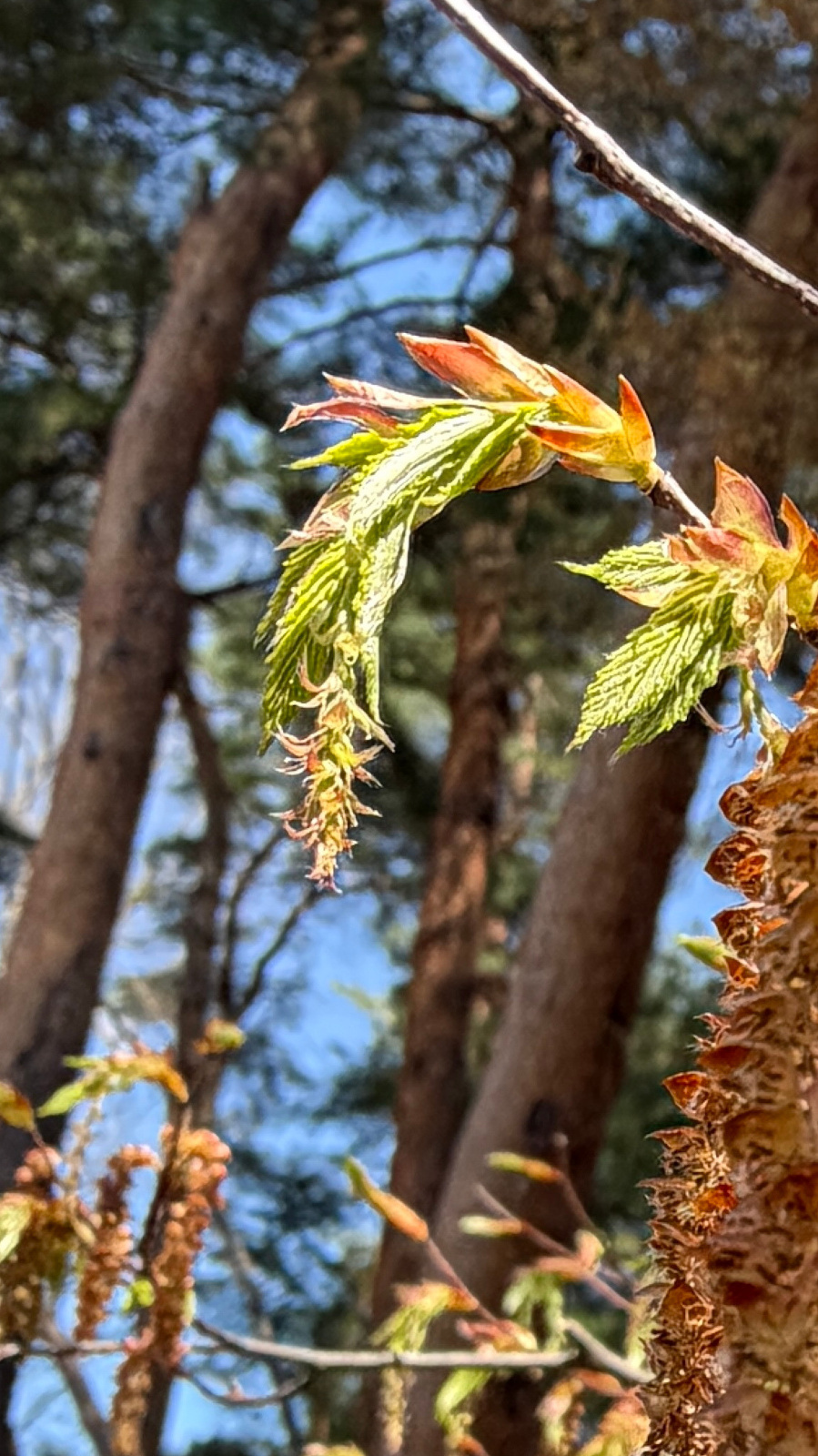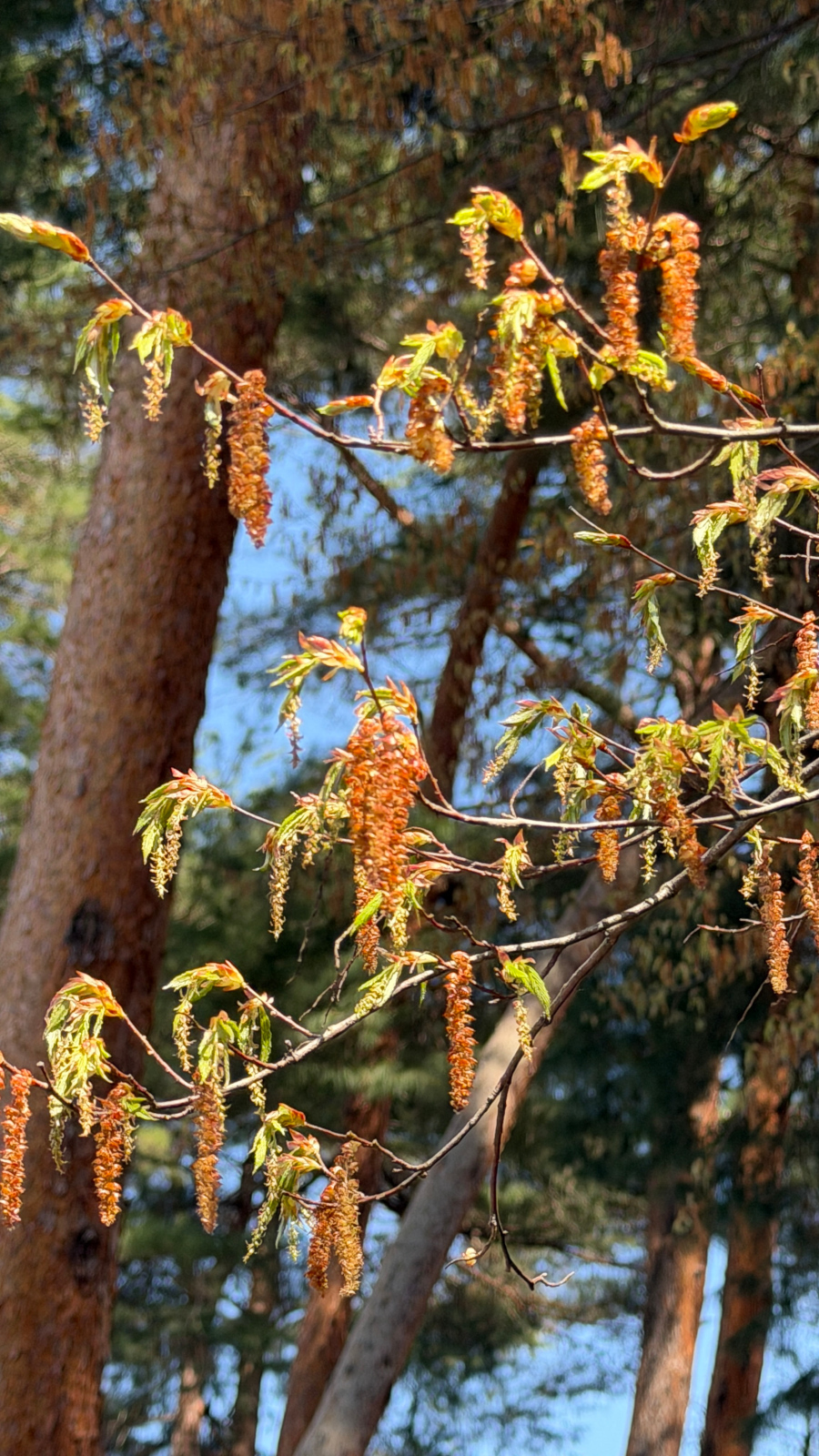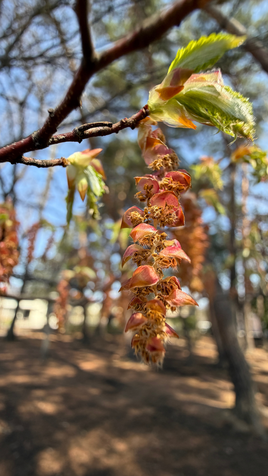 春の訪れとともに、3月頃から花を咲かせますが、色合いは控えめで、気づかないまま通り過ぎてしまうこともあるかもしれません.雄花は、しめ縄に下げる白い紙に似ていることから「シデ」と名付けられたといわれています.