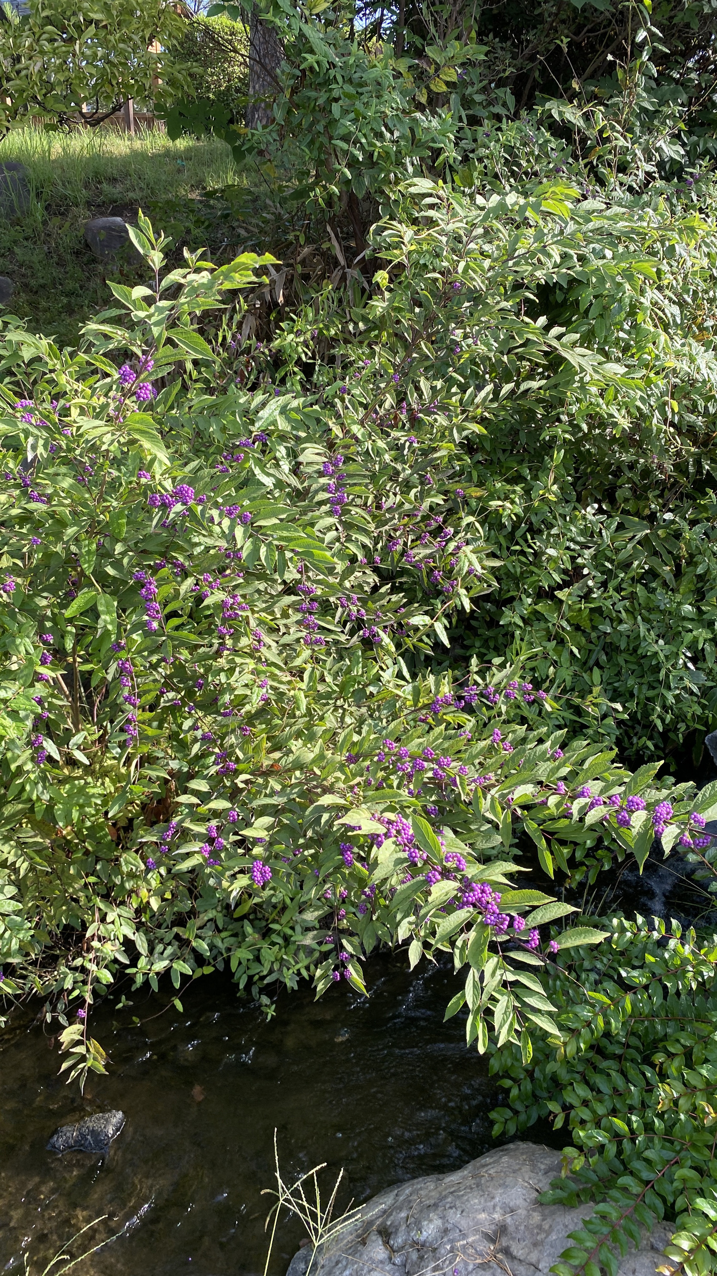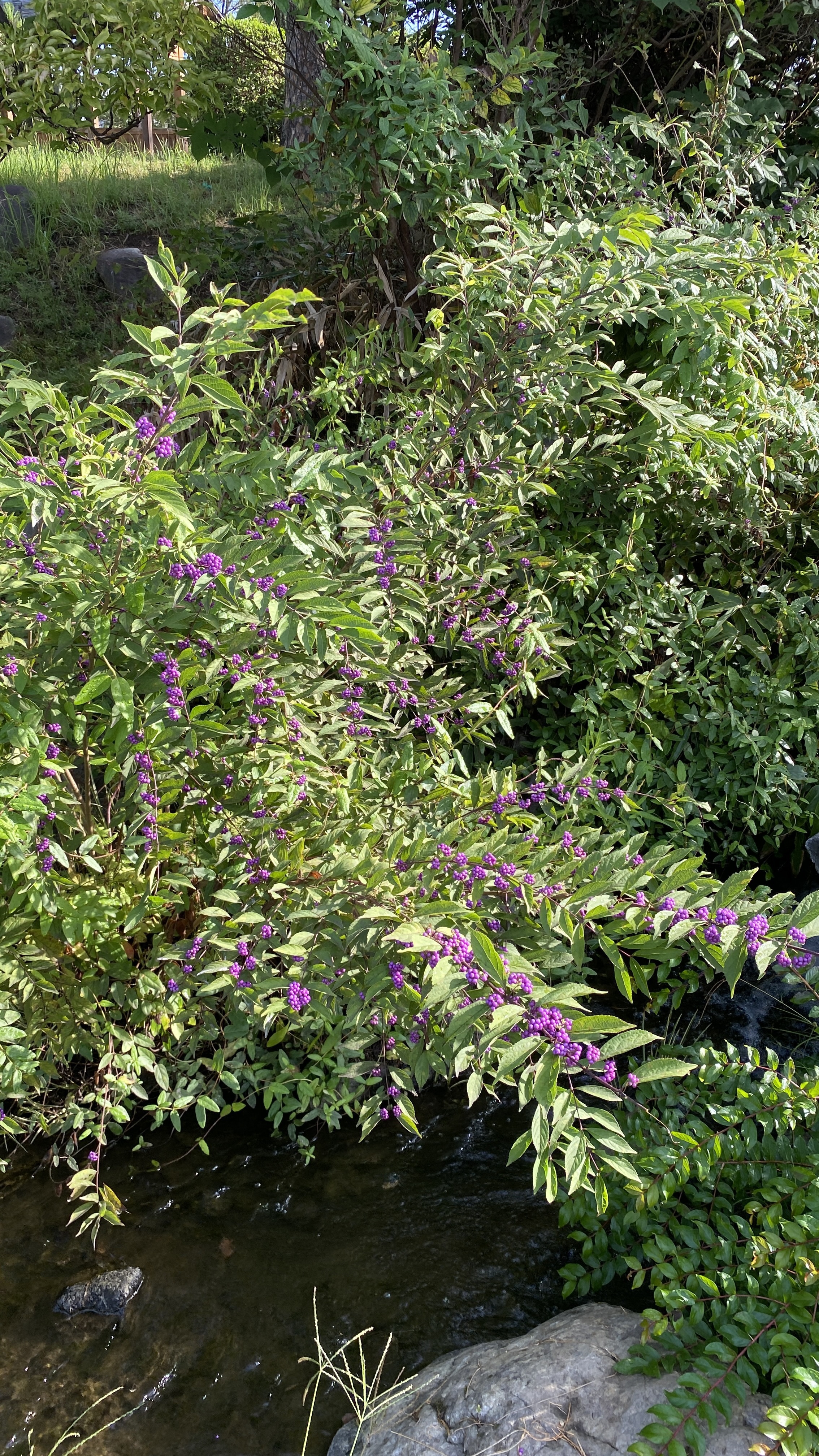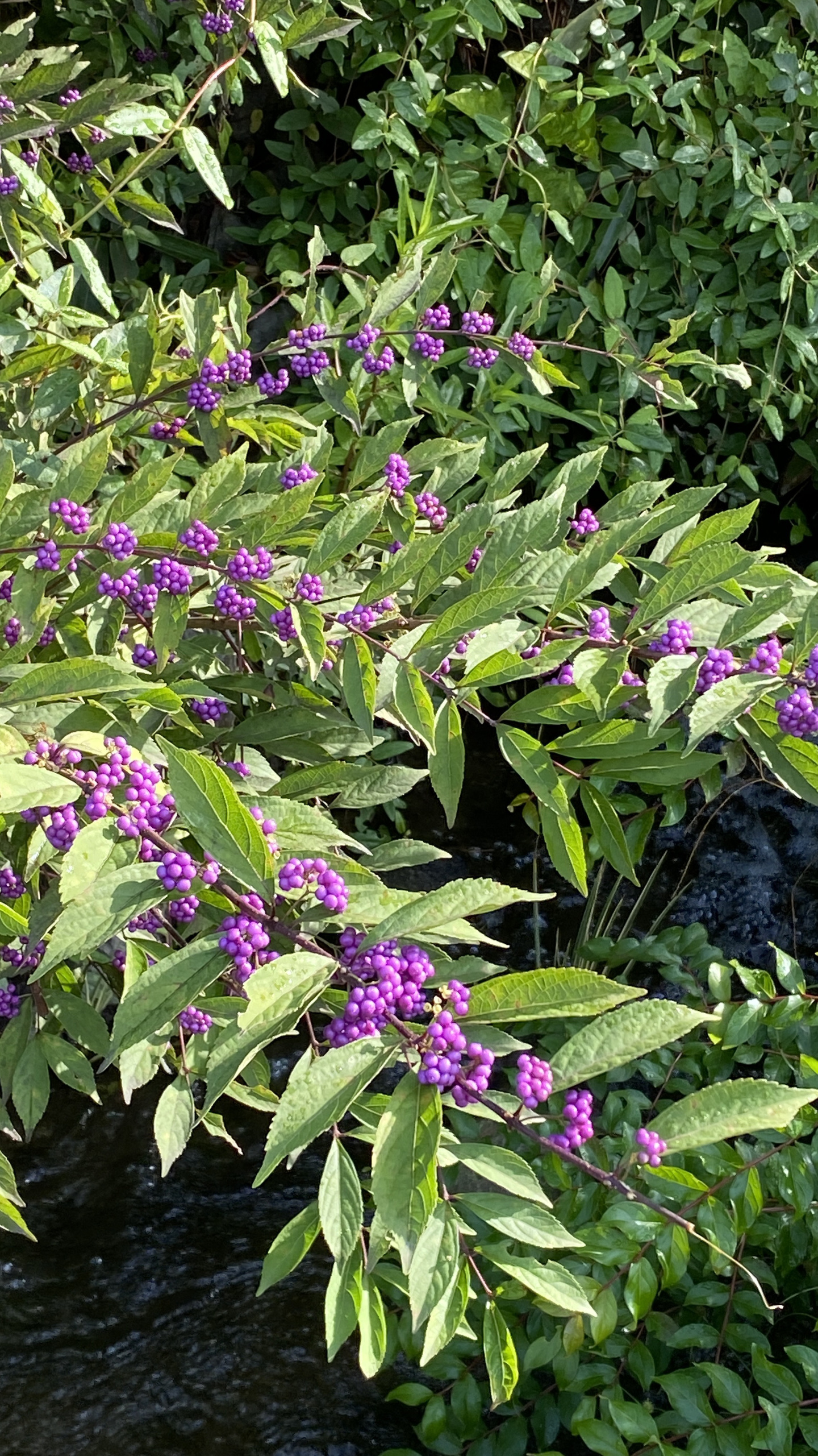 日本各地の山野に広く分布する落葉低木で、やや湿り気のある場所を好んで自生しています.樹高はおよそ1.5メートルほど.6月から8月にかけて花を咲かせ、9月から11月には果実が紫色に熟して季節の彩りを添えてくれます.運動公園内では水生植物園を流れる水辺で、その姿を楽しむことができます.