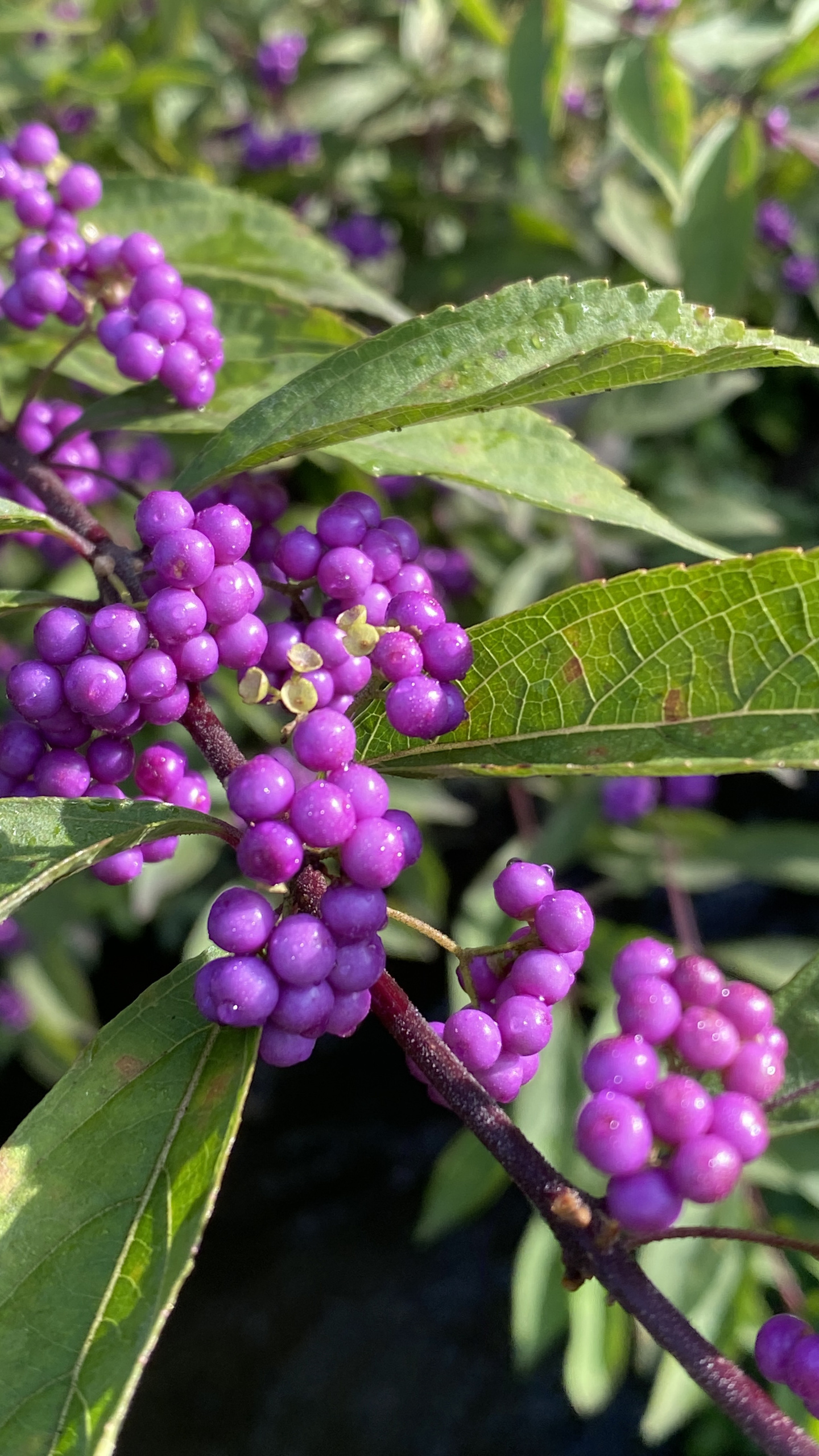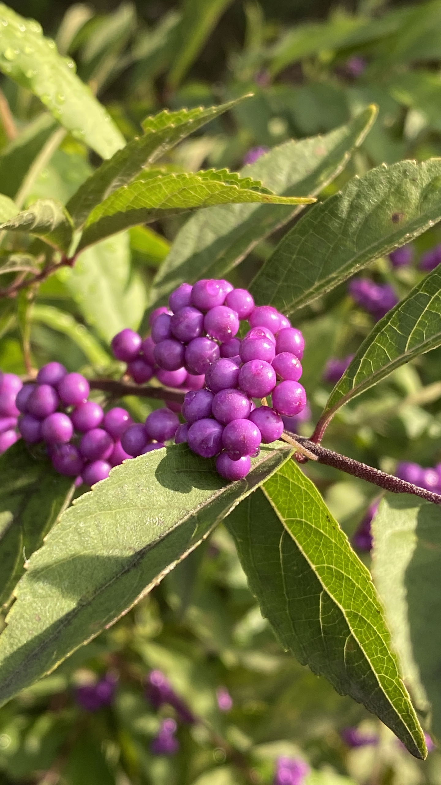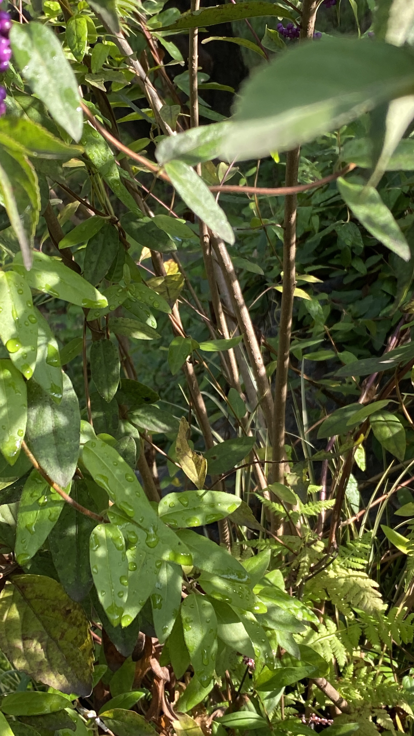 日本各地の山野に広く分布する落葉低木で、やや湿り気のある場所を好んで自生しています.樹高はおよそ1.5メートルほど.6月から8月にかけて花を咲かせ、9月から11月には果実が紫色に熟して季節の彩りを添えてくれます.運動公園内では水生植物園を流れる水辺で、その姿を楽しむことができます.