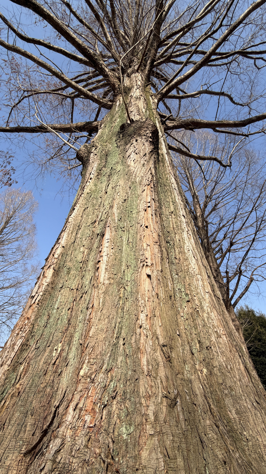 「メタセコイア」は各地の公園や街路樹として植栽され、秋には鮮やかなレンガ色に色づいて風景を美しく彩ります.樹形そのものが大変美しく、秋に限らず一年を通じて鑑賞をお楽しみいただける樹木です.運動公園内では、水生植物園やとちのきファミリーランド入り口付近などでその姿をご覧いただけます.春には花を咲かせ、秋に形成された果球は翌春に落下します.