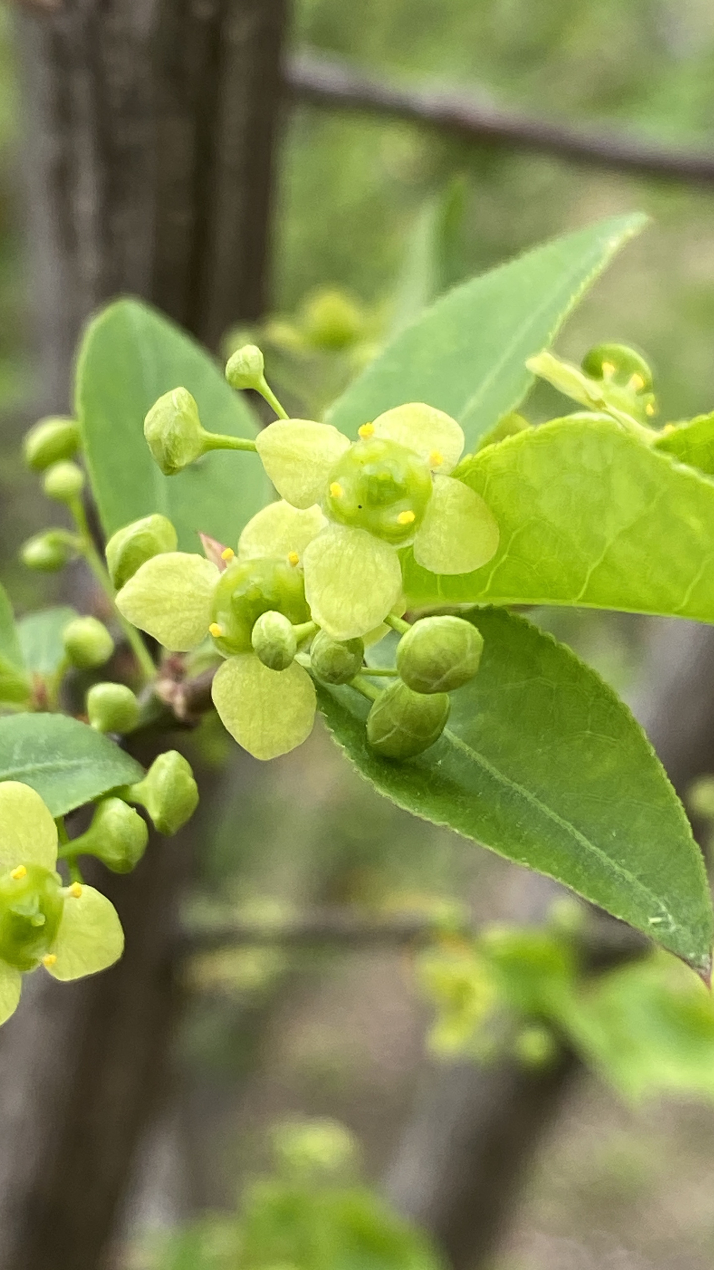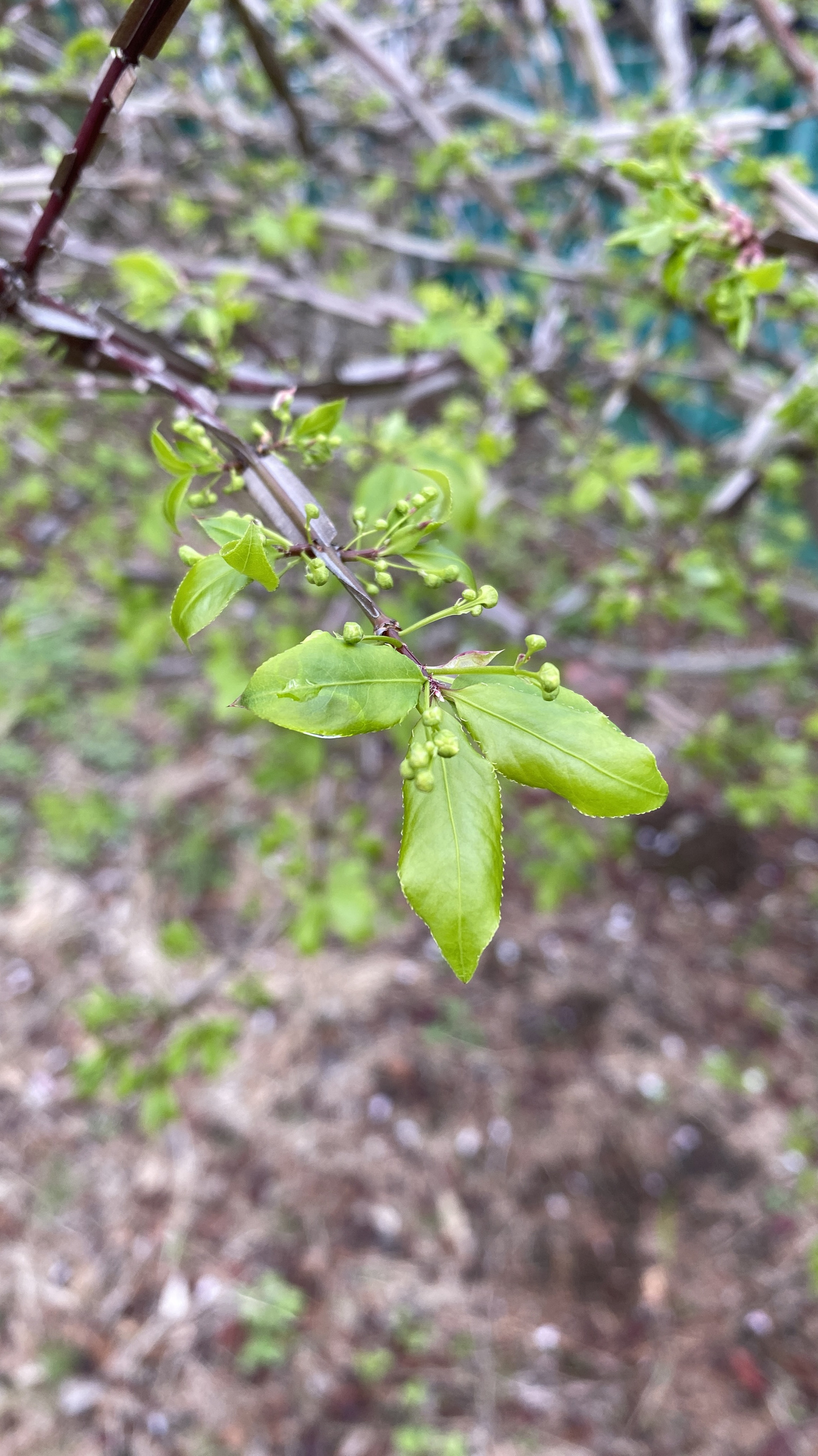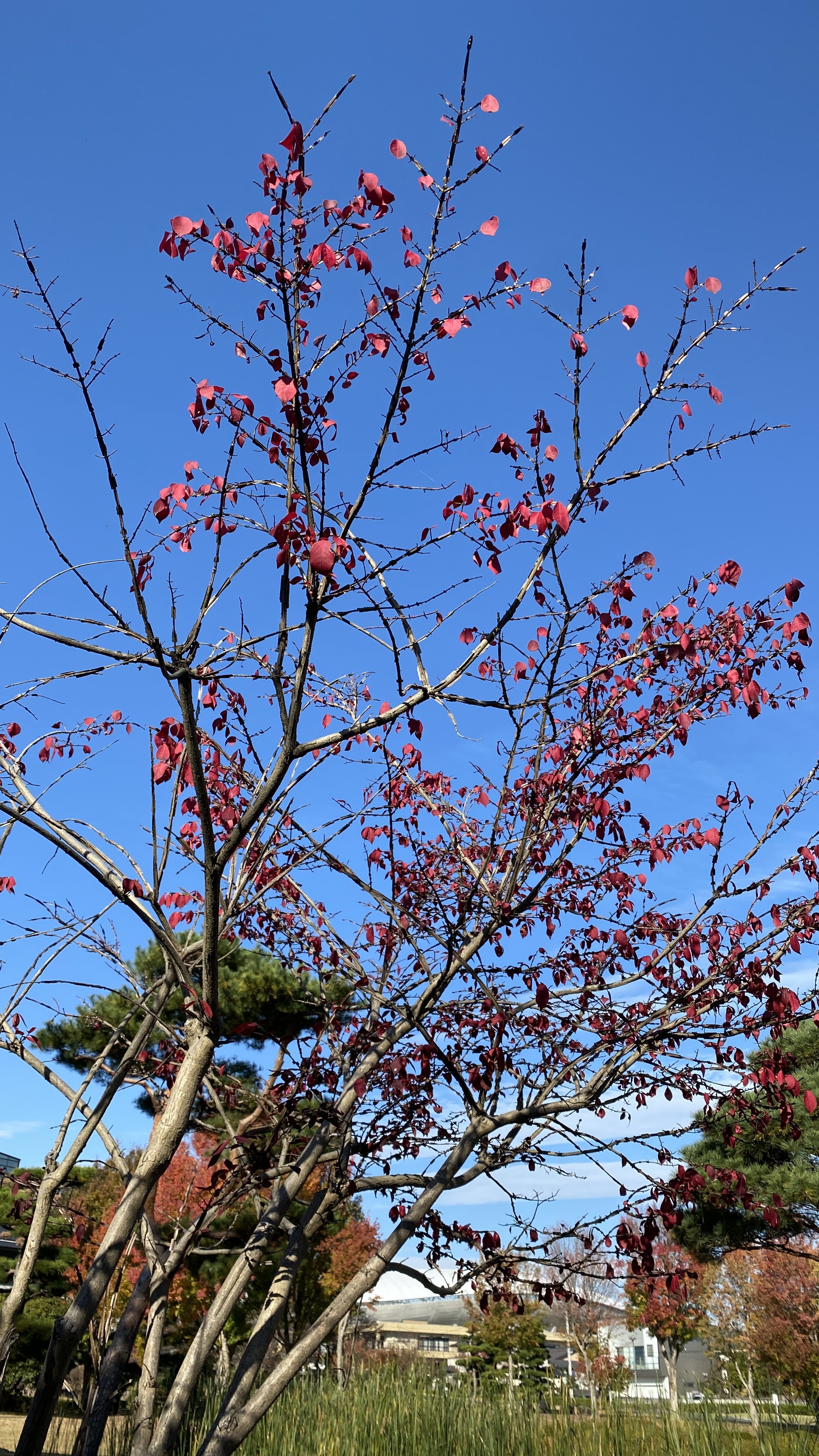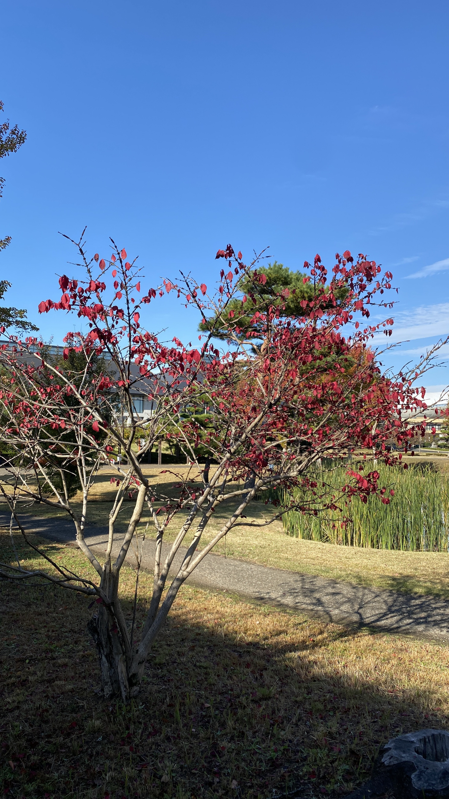 ニシキギ(錦木)は、カエデ、スズランノキと並び「世界三大紅葉樹」に数えられる落葉低木で、特にその紅葉の美しさから広く親しまれています.「錦木」という和名は、秋の葉の鮮やかな色づきが、まるで錦織のようであることに由来します.また、ニシキギの枝には、矢羽のように四方に張り出したコルク質の翼(翼枝)がある点も大きな特徴です.花は直径数ミリほどの淡緑色で、咲いていても遠目では気づきにくいものです.運動公園では、水生植物園からウォームアップ場付近にかけて植栽されており、秋にはその紅葉を楽しむことができます.
