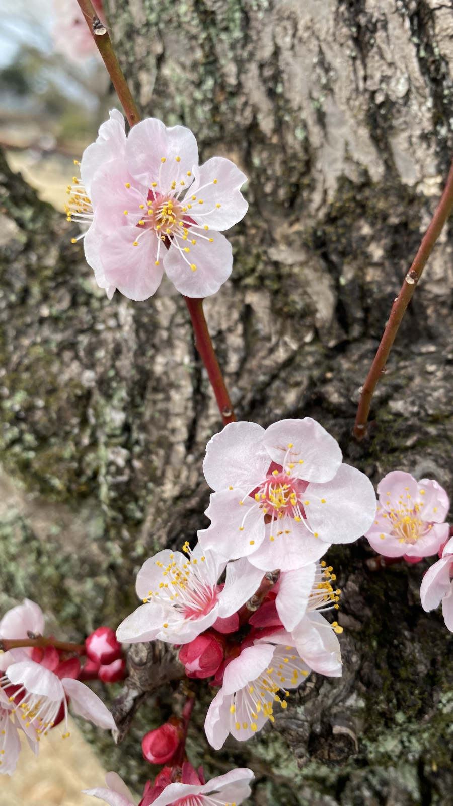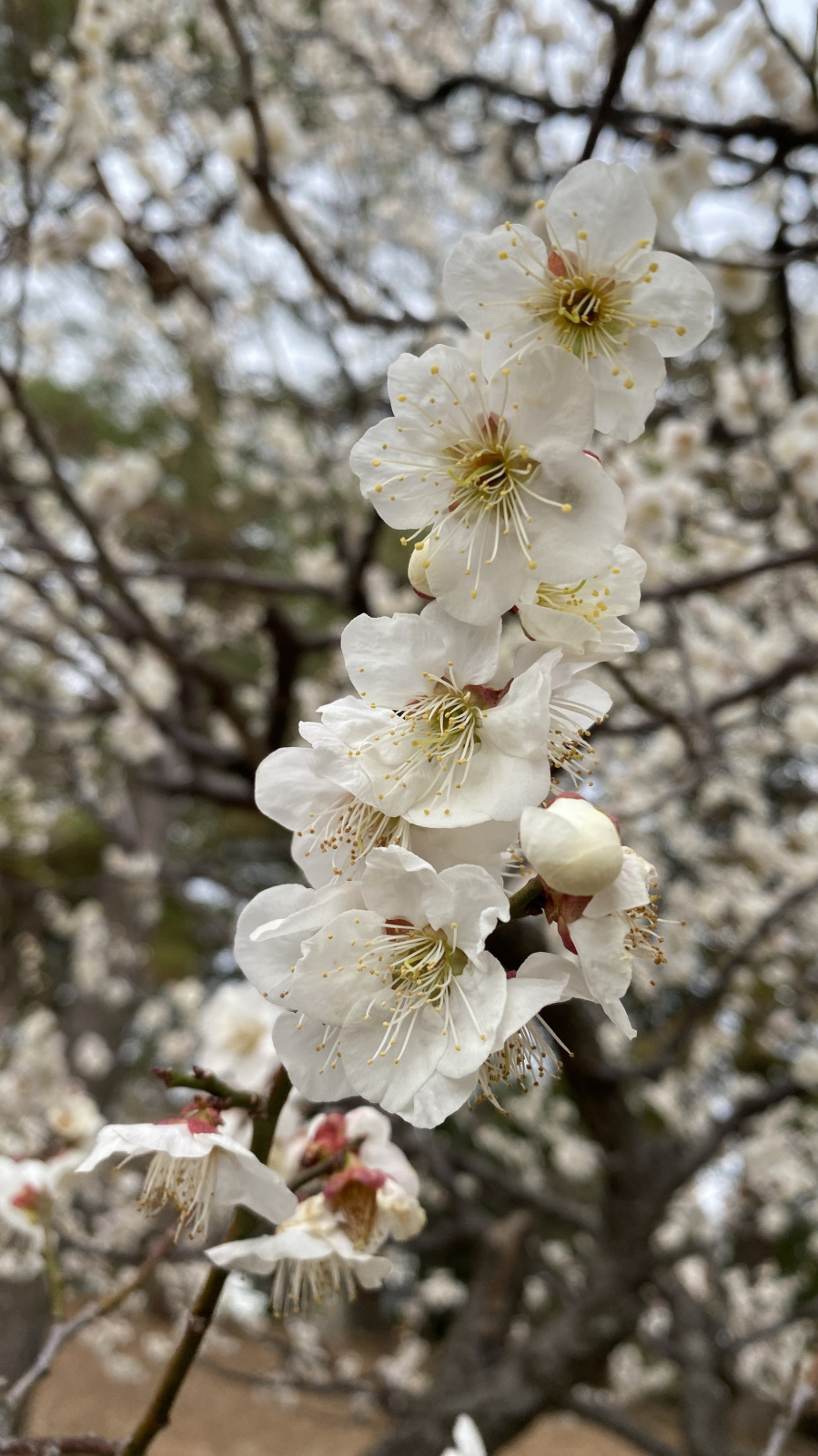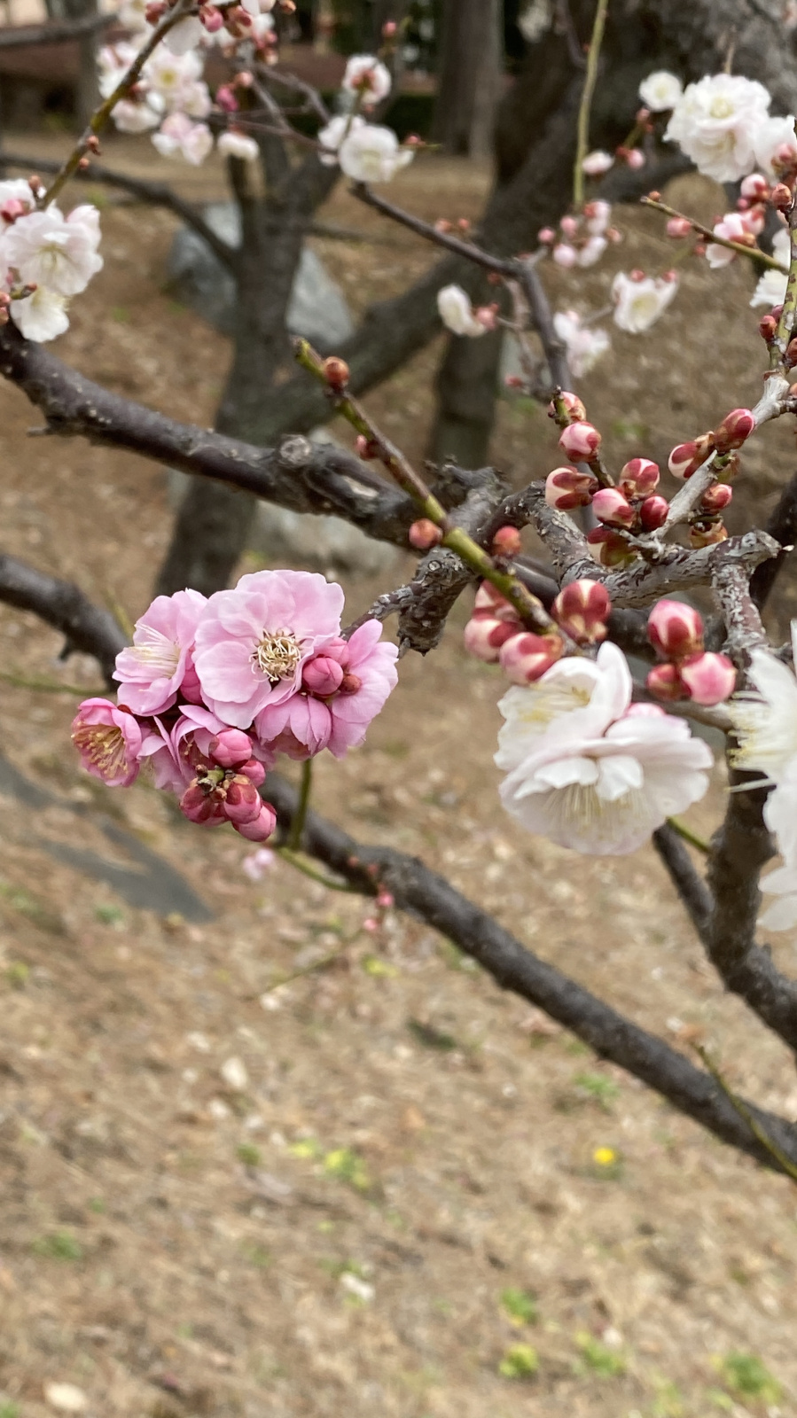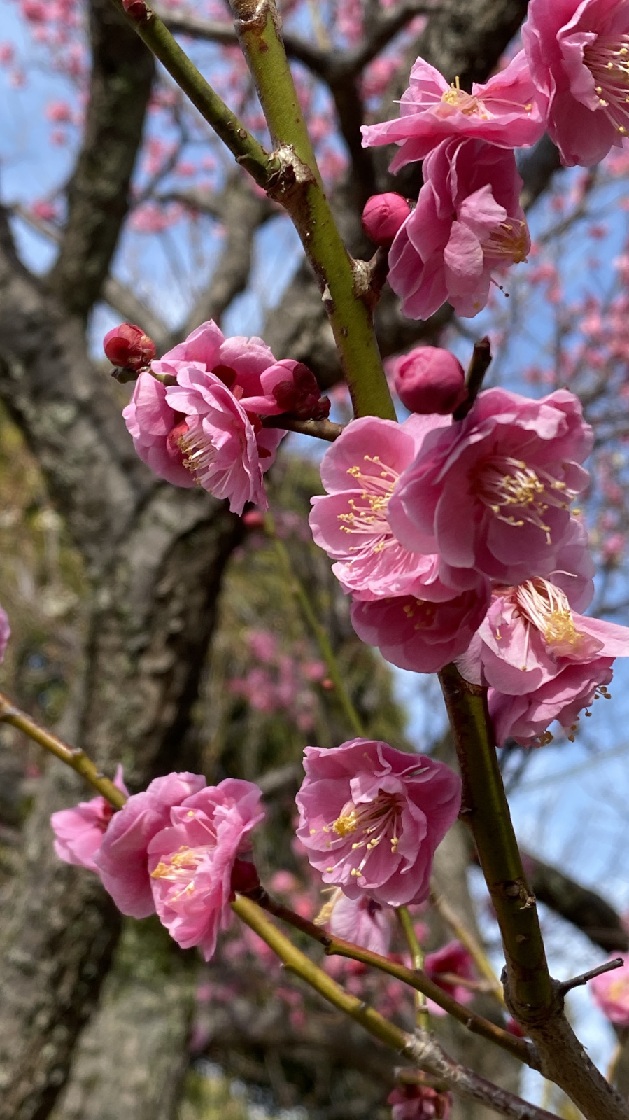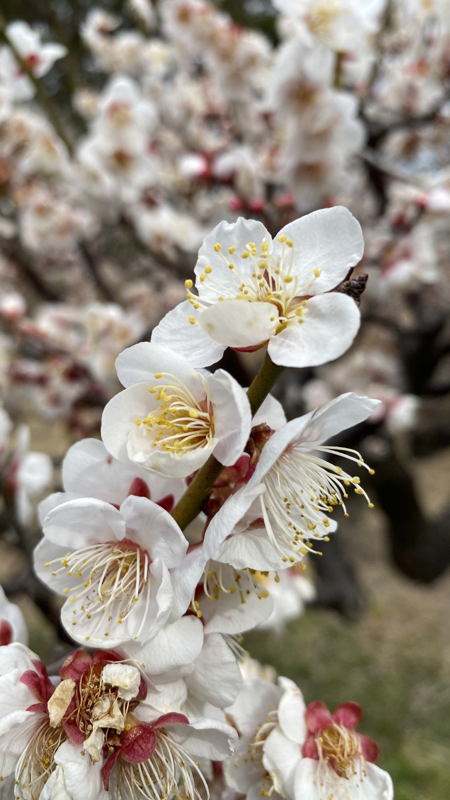 水生植物園には15本の梅の木があり、花の特徴から少なくとも7種類が確認できます。梅の品種は非常に多岐にわたるため、残念ながらこれらの梅の品種を特定するまでには至っておりません.開花とともに微かな香りが漂い、訪れる人々の心を穏やかに癒してくれます.